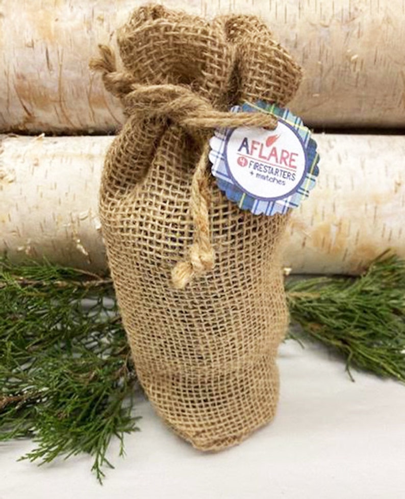 Firestarters by AFlare save everyone the hassle of getting the fire started during the holidays and all winter long. Earthy and rustic tan burlap pouch holds 4 blue fire starters.