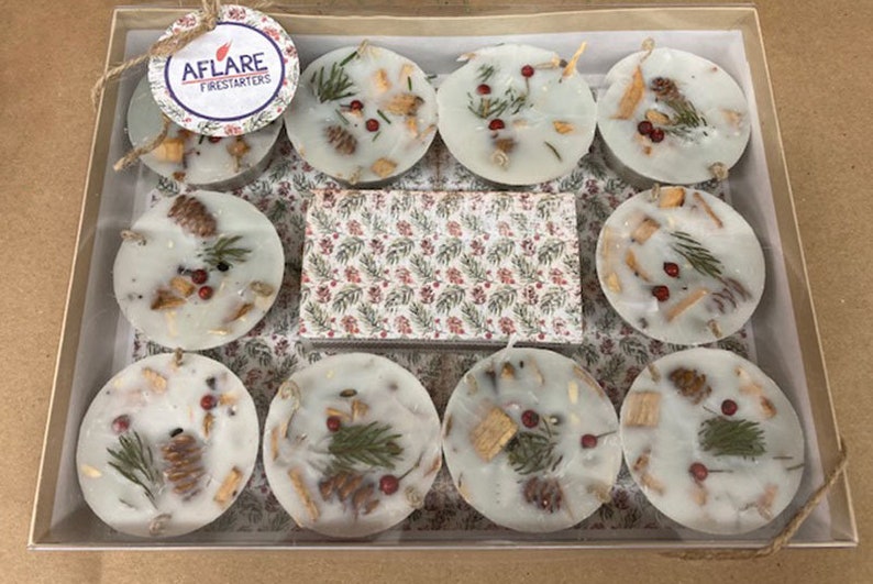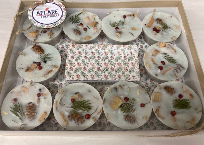 A very special Christmas farmhouse themed gift box of 10 fire starters & matches.