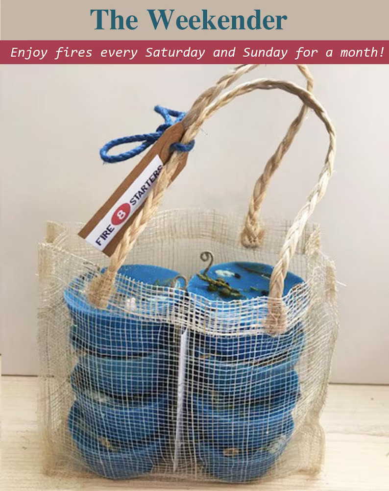 Keep the home fires burning every weekend for a whole month with these attractive and practical fire starters! If you are one to light fires on weekends to stay cozy, “The Weekender” is for you!