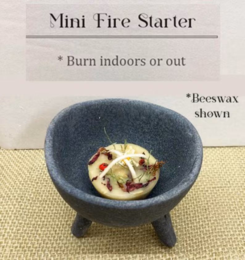 Each fire bowl comes with a beeswax (shown) or soy wax fire starter. Each contains wildflowers/wood/berries. OR buy Sole Bowl separately, use drop down menu.